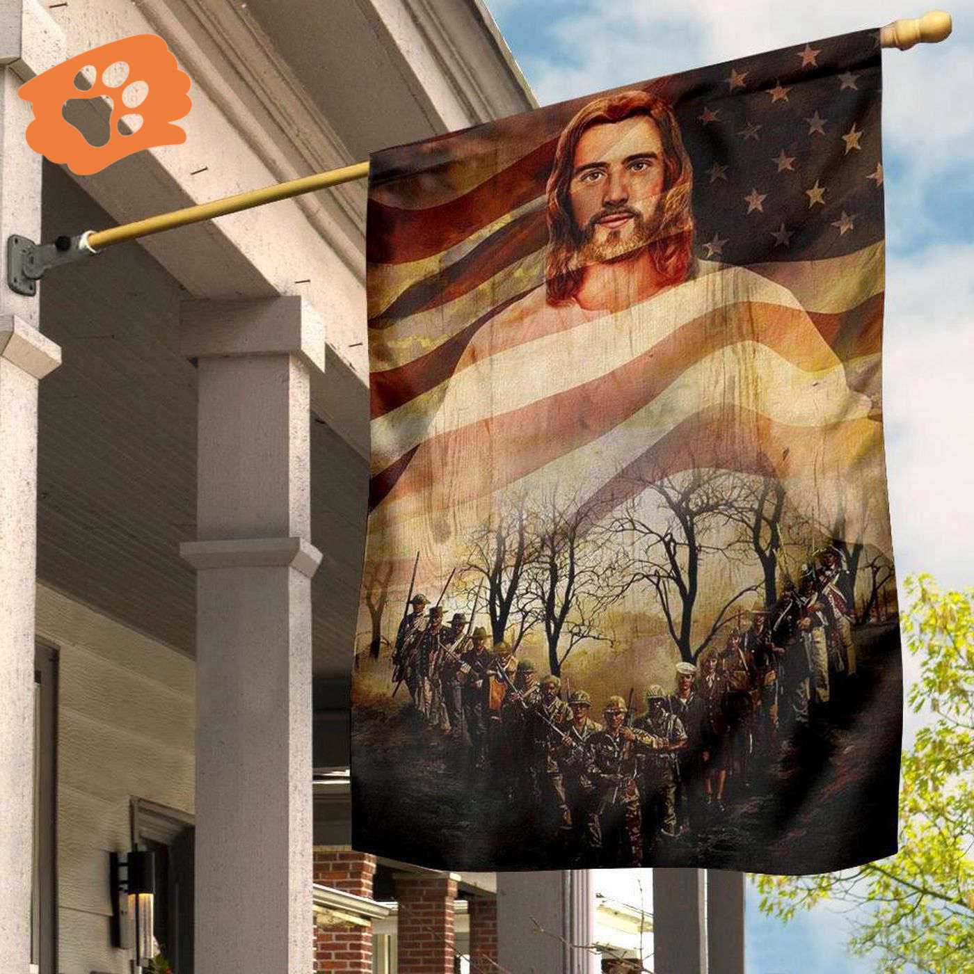 Jesus And Veterans American Flag One Nation Under God Canvas Print Art Military Decor – information