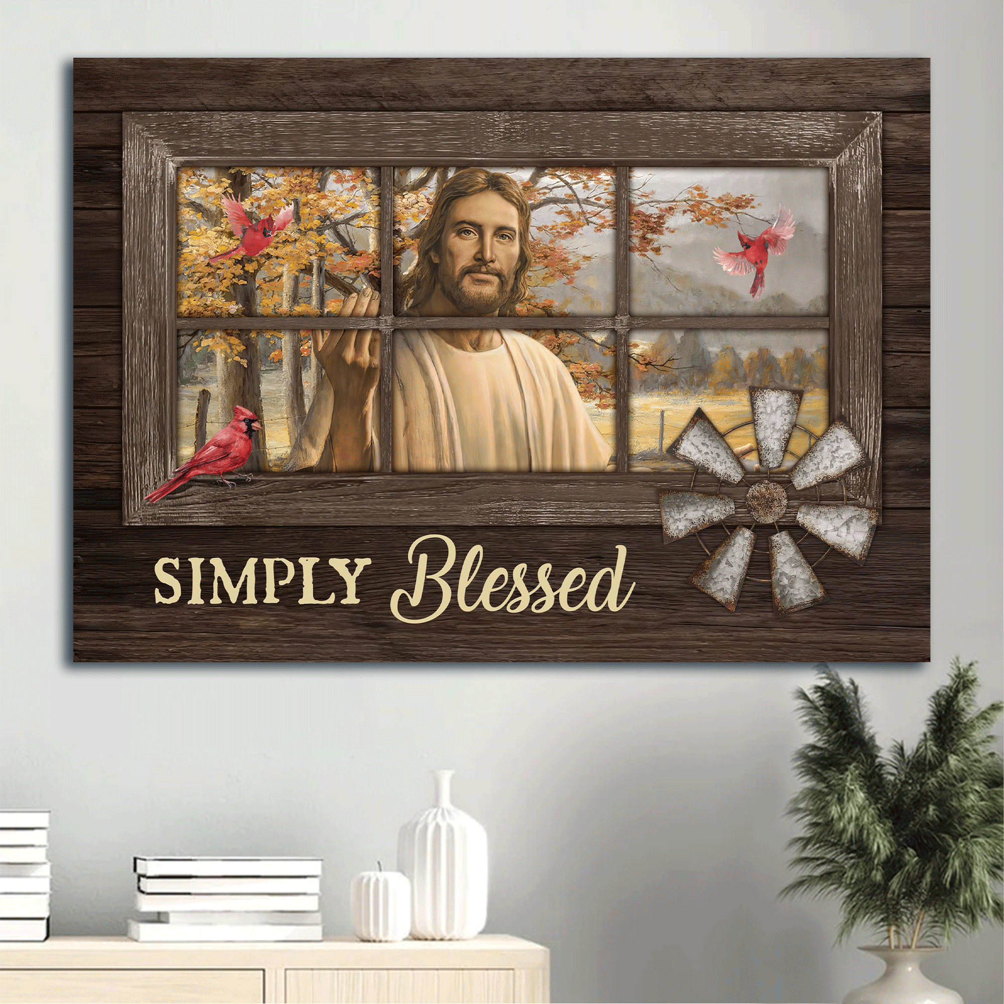 About Jesus Landscape Poster: Beautiful Home Decor Gift for Christians – Autumn Forest Red Cardinal – Simply Blessed