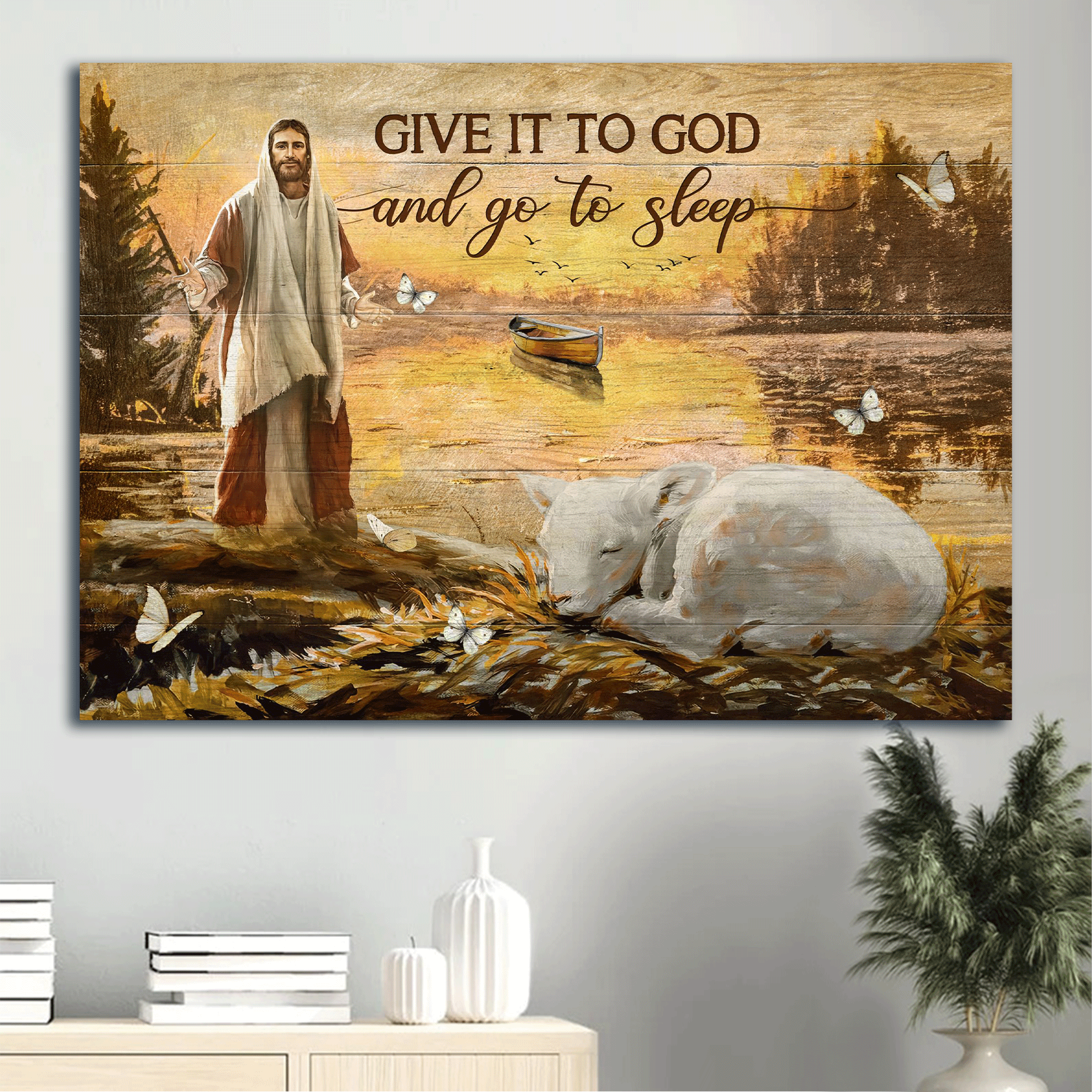 Bring the beauty and serenity of Jesus into your home with our stunning Jesus Landscape Poster. Featuring a watercolor lamb, magic lake, and scenes from the life of Jesus, this poster is the perfect gift for Christians. Let this poster remind you to give your worries to God and rest peacefully each night. Add a touch of faith and inspiration to your home decor with this meaningful and thoughtful gift.