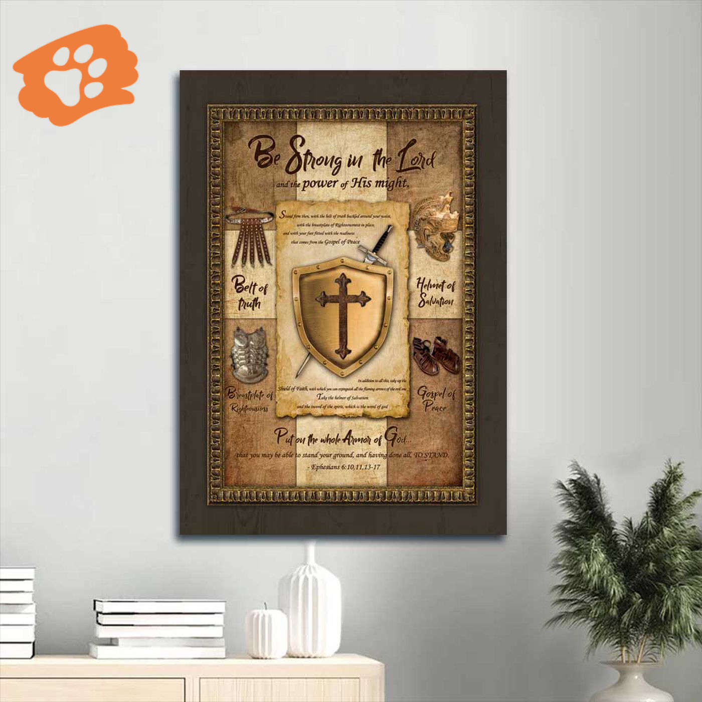 Jesus Portrait Poster – Armor of God Shield of Faith Home Decor Gift for Christian – Be Strong in the Lord – 82 characters