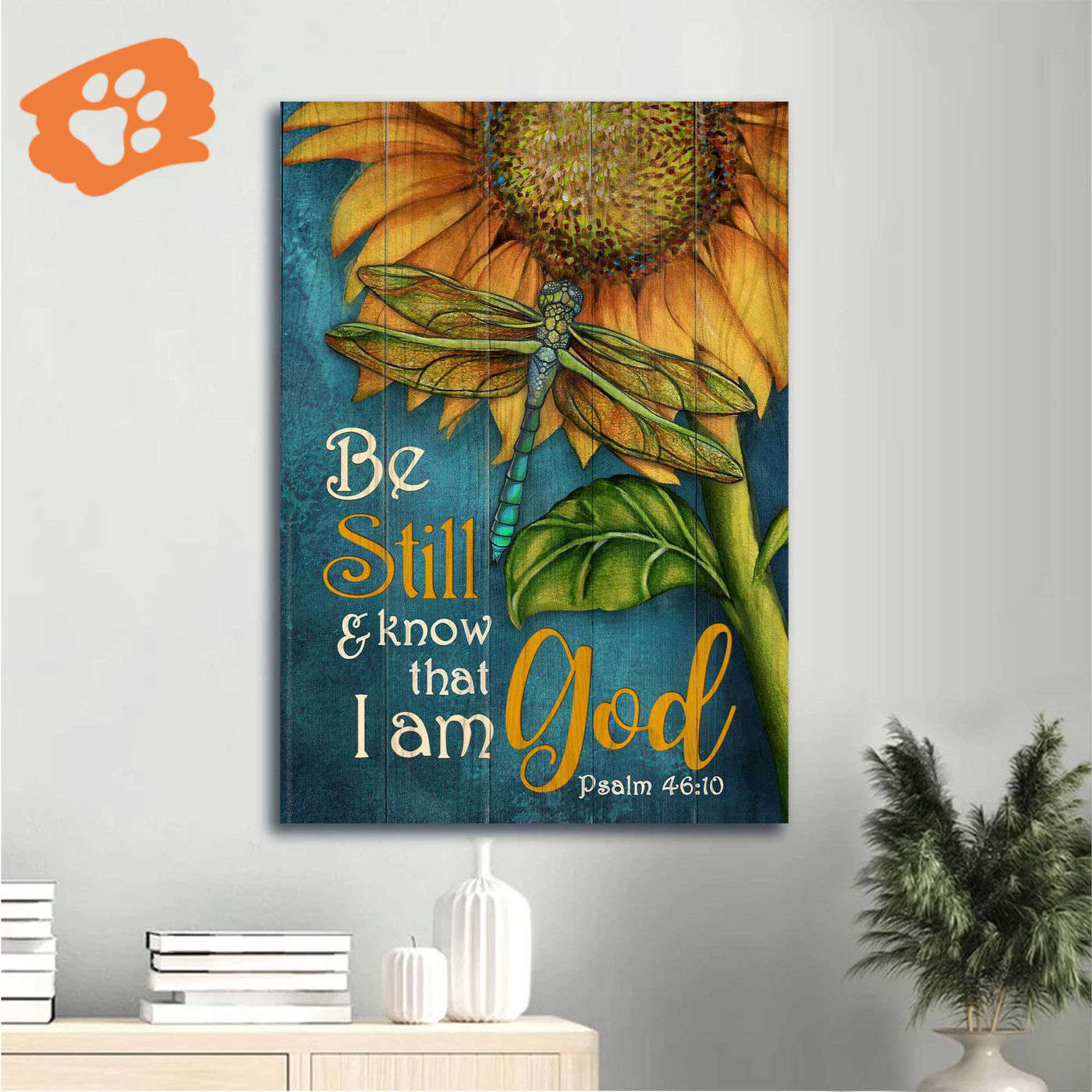 Jesus Portrait Sunflower Dragonfly Poster – Christian Home Decor Gift – Be Still And Know That I Am God